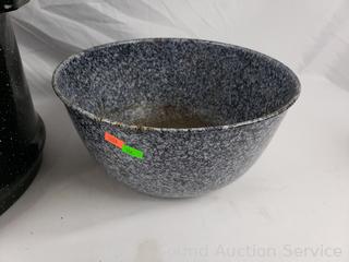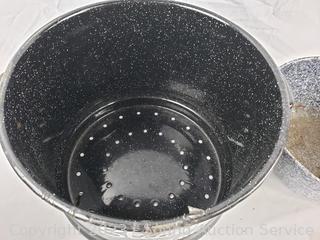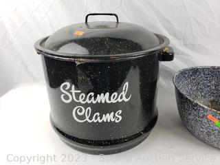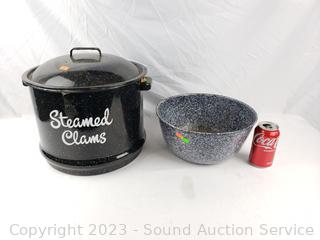 Lot #0136: "Steamed Clams" Enamelware Boiling Pot & 11.5" Bowl