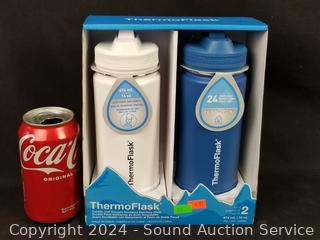 Lot #0317: 2 ThermoFlask 16oz Vacuum Insulated Steel Travel Bottles