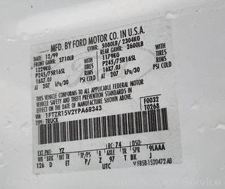Lot #0002u: 2000 White Ford Ranger 4x4 Pickup Truck **Cash or Cashiers Check for Payment Only**