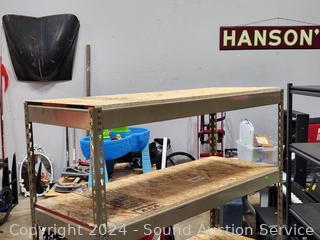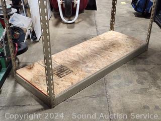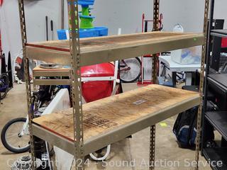 1/2" OSB shelves. One of the vertical supports is bent. 6ft H x 48" L x 18" W.