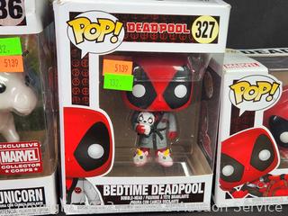 Deadpool on Unicorn #36, Deadpool #320, Bedtime Deadpool #327. All are in original packaging. Some minor denting in packages.