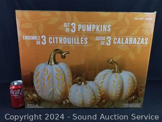 Lot #0284: 3pc Decorative Lighted Pumpkin Set
