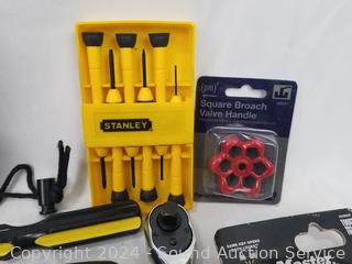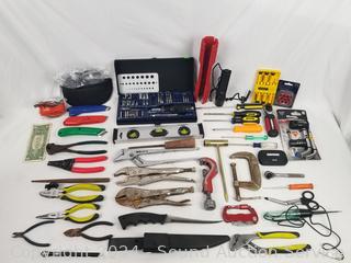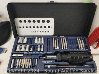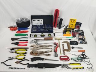 Lot #0129: Assorted Hand Tools, Sockets, Bits, Eye Protection