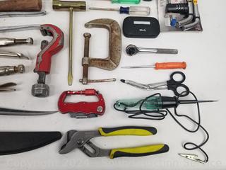 Snips, bits, pliers, screwdrivers, etc. Refer to photos for more details.