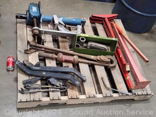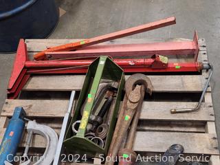 Ball press, corner press, ActionJac, PTO parts? Refer to photos for lot contents, I am really not sure or know what to call most of it.