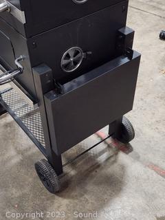 Comes with grill cover. Signs of wear from use, overall great condition. 42" H x 45" W x 18" D overall, 24" x 18" grilling surface.