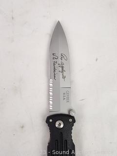 10" long, 4-3/8" blade pocketknife, both with sheathes.