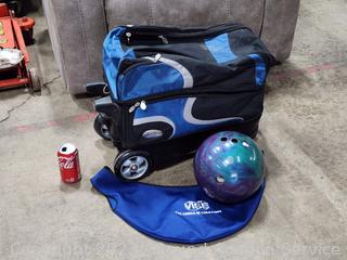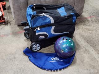 Lot #0045: Hammer Rolling 2-Ball Bowling Bag w/Ebonite Clash Ball