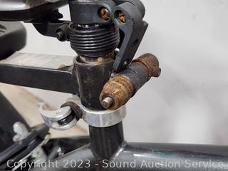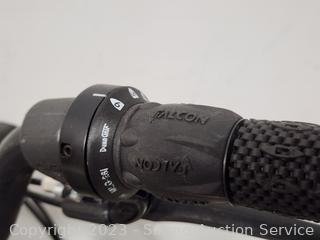 Comes with a Bell rear rack, bottle holder & light (unknown condition), front suspension, shifter & brakes appear to be functioning as intended. Some weathering wear.