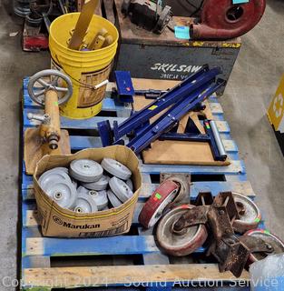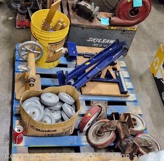 5" ball bearing wheels, 8" casters, Roller stands, lathe accessories. Refer to photos for more info.