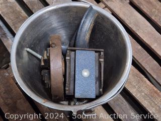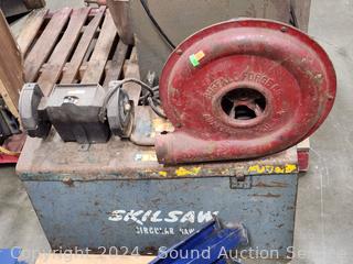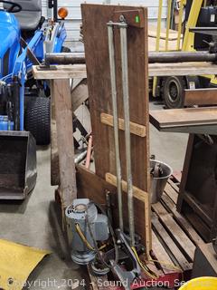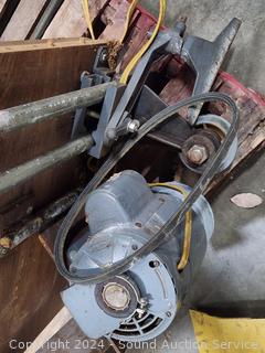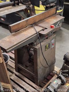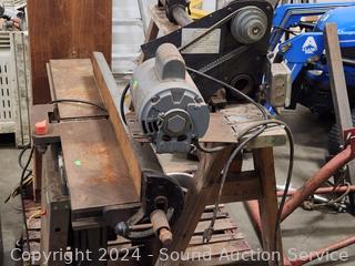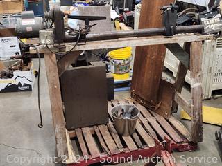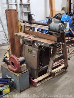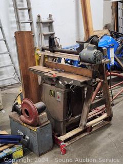 Lot #0339: Pallet w/Lathe, Lathe Parts, Jointer, Blower, Grinder