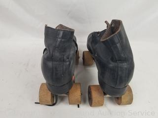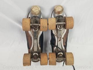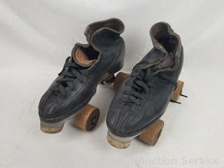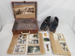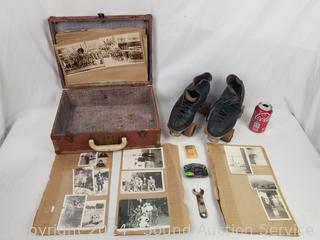 Lot #0139: Vtg. Roller Skates, Zippo Lighter, Belt Buckle, Photos, Old Trunk