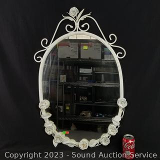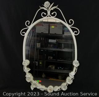 Lot #0039: White Metal Framed Rose Motif Mirror