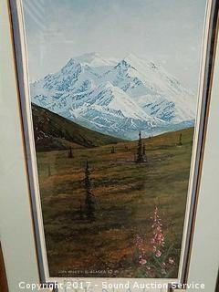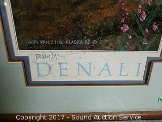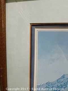 Signed by Jon Van Zyle. Dated 1987. Professionally framed and matted in museum glass. Frame fits a 29" x 16" piece of artwork.