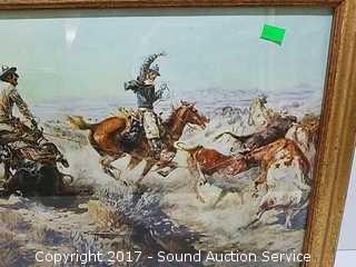 Print of his original 1907 piece, framed in museum glass. Copyright A.A. Inc. Frame fits a 12" x 19.5" piece of artwork.