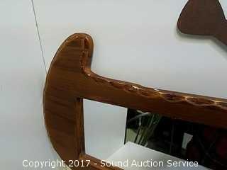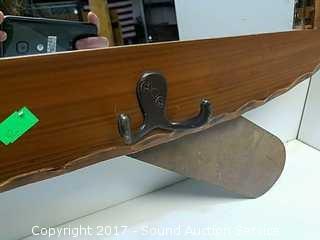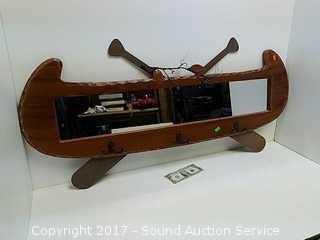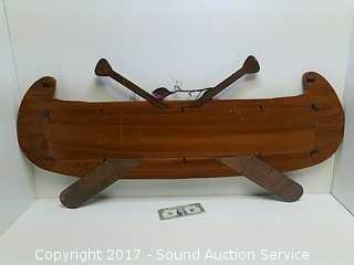 Solid wood construction with metal oars. Approx. 42" long by 20" tall.