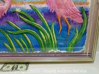 Lot #0147: Original Flamingo Relief Shadowbox Artwork
