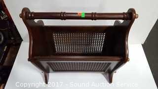 Lot #0175: Solid Wood & Cane Woven Magazine Caddy