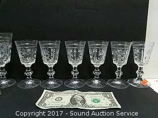 Includes: 11 larger wine glasses, 10 smaller wine glasses, 6 cordials.