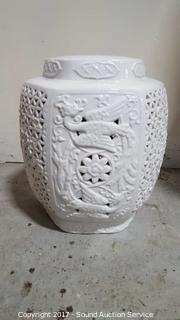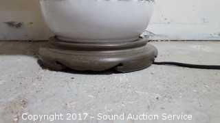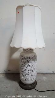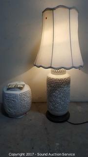 Lot #0114: Unique Asian theme lattice ceramic lamp & lamp base