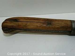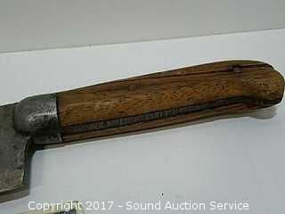 9" long blade. Very well made, some cracking on the wooden handle, extremely sharp. Nice Nichols Bros mark. Made in USA.