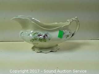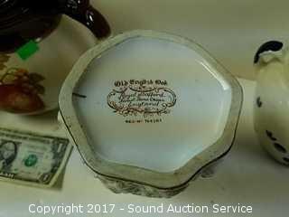 Includes: Royal Stafford Old English Oak Pitcher, McCoy 75/5 Pottery Pitcher, and a Johnson Bros Gravy Boat.