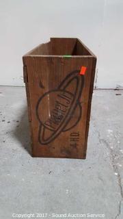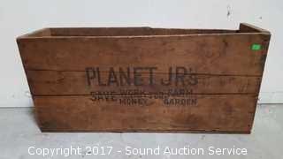 Very cool. Single wheel hoe garden plow and cultivator. Comes with instruction manuals, attachments and original wooden crate. In very good condition. Approx. 13" x 21" x 7".