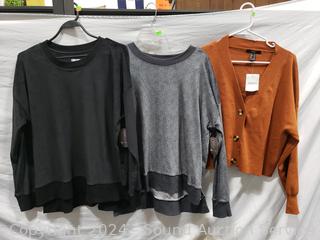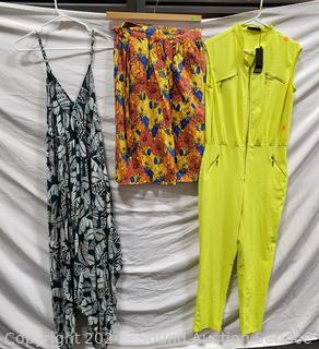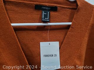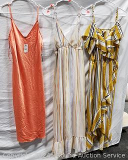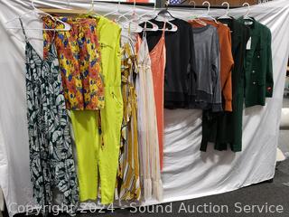 World Market Dress S:S/M, Forever 21 Skirt S:M, Jieru Dress S:M, Blush Dress S:M, Charlotte Rouse Dress S:M, Express S:S, (2) Secret Treasures Sweater S:M, Forever 21 Blouse S:M, J.O.A. Vest Jacket, Belle Business Wear 2pc Skirt Suit. All or most with original tags. Don't see any issues.