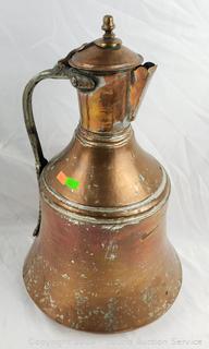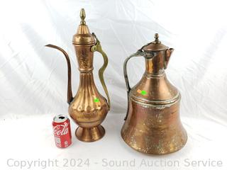Lot #0138: 2 Large Vintage Handcrafted/Hammered Copper Pitchers
