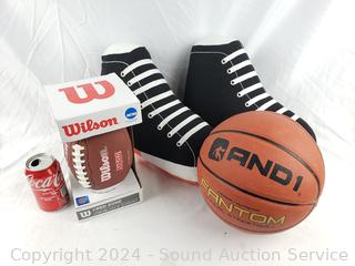 Lot #0076: 2 Sneak Throw Pillows, Wilson Football, AND1 Basketball
