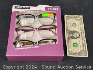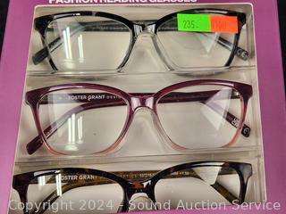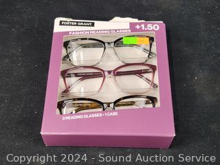 Lot #0235: 3 Foster Grant Fashion +1.5 Reading Glasses w/1 Case