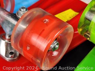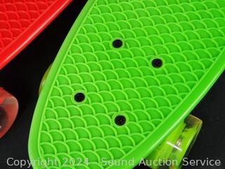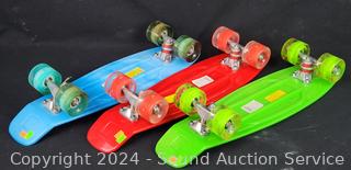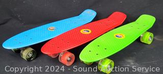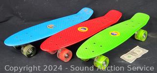 Lot #0150: 3 Green/Blue/Red Shortboard Skateboards