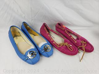 Michael Kors baby booties, Salvatore Farragaro Italy heels S:10?, Michael Kors Magenta & Blue Leather loafers. Don't see a size.