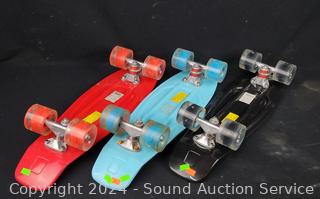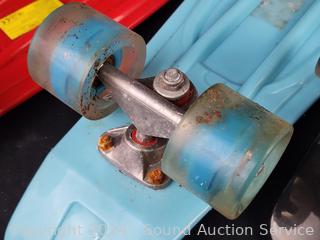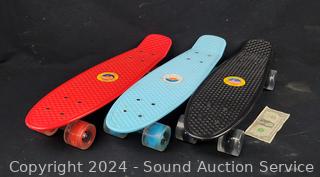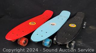 Lot #0167: 3 Red/Blue/Black Shortboard Skateboards