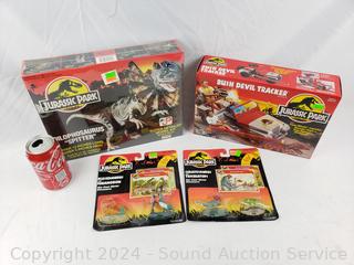 Lot #0177: 4pk NOS Kenner 1993 Jurassic Park Dinosaur Figures & Vehicle
