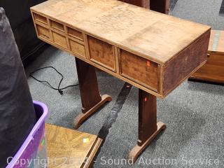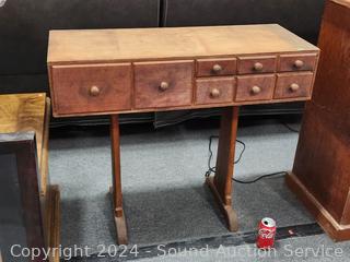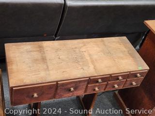 31.5" H x 36" W x 14" D. Varius wear to finish.