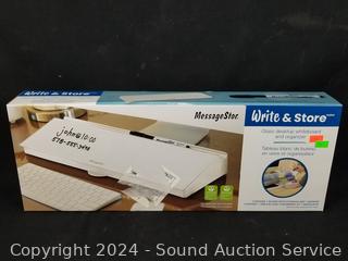 Lot #0251: MessageStor Write & Store Glass Desktop Whiteboard & Organizer