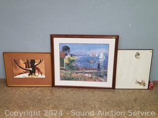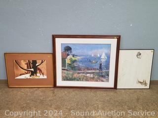 Copper art is signed Pan, 22" x 27.5". Unfinished sketch, no signature, 24" x 19.75". Harbor print, 32" x 37.5".