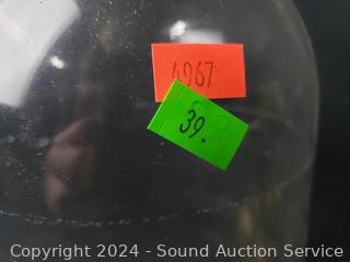 Wire for pendulum is broken, untested. Plastic globe. No Key. 11" H x 6" Dia.