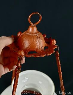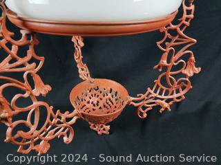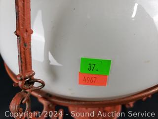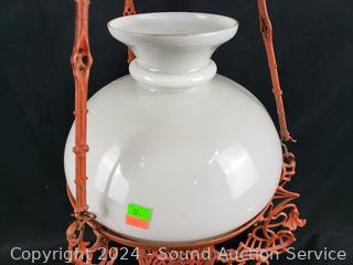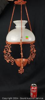 Lot #0037: Vtg Painted Cast Iron Milk Glass Shade Hanging Candle Lamp