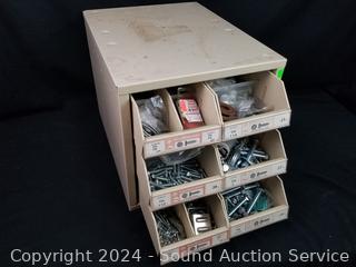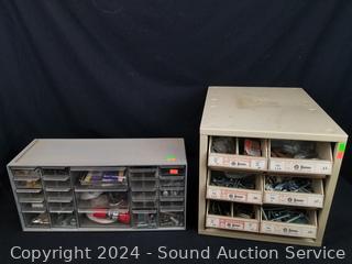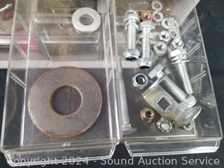 Screws, bolts, washers, fuses etc. Refer to photos for lot contents. 13.5" H x 12.75" W x 16" D & 8.5" H x 18.75" W x 6.5" D.