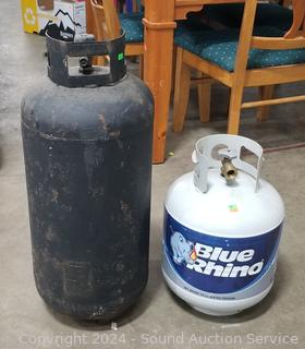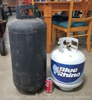 16.6lb dated 07-21 (may have a little fuel) 18" H x 12" Dia, 31lb dated 12-87 (feels empty) 30" H x 12" Dia.