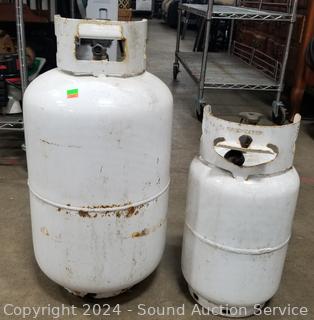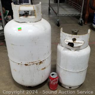 14lb? tank (feels like it has some fuel), dated 05-06, 17" H x 8" Dia. 25.3lb tank, (feels empty), 24" H x 12" Dia.