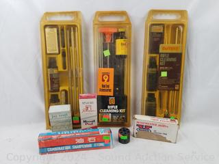 Lot #0114: 3 Rifle Cleaning Kits, Grips, Recoil Pad, Sharpening Stone
