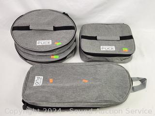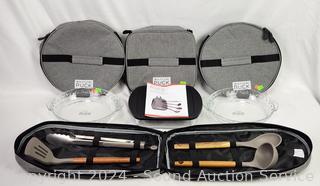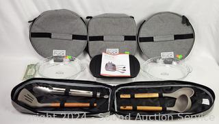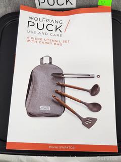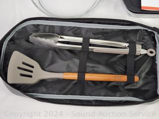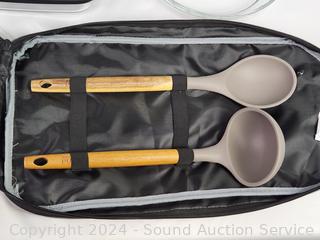 Lot #0137: 3 Wolfgang Puck Glass Food Storage Containers & Utensil Set w/Bags