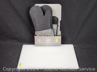 Lot #0165: 4pc KitchenAid Silicone Grip Set & 12" x 18" Cutting Board