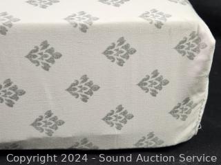 Medallion print. 1 flat, 1 fitted, 4 pillowcases. Don't see any issues.