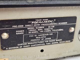 Scanner has power, others are untested. 2 Maxon 278P Handheld CB, Cobra 25LTD WX Classic CB, Uniden PC33 CB, Realistic Pro-2009 Scanner. Various wear.
