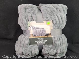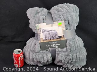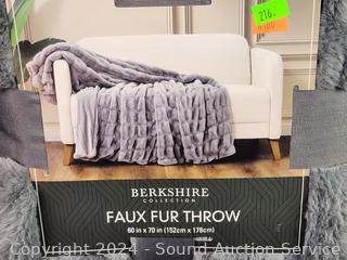 Lot #0216: Berkshire Life Gray Faux Fur Plush Throw
