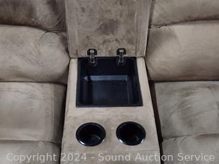 317 Lot including Brown Microfiber Vinyl Reclining Sofa's, King & Queen Beds, Woodchipper, Lawn Mower, Massage/Heat Power Recliner, Live Edge Shelf/Console, Hutch, Dining Table, Drexel Serpentine Dresser, Assorted Tools (Power Tools, Hand Tools, Bits, Hardware, etc), Tool Chest, TV's, Ornate Carved Camphor Wood Chest, Electronics, Pop-Up Canopy, Assorted Kitchen Cookware, Household Goods, Home Decor, Artwork, Rugs & More!!!